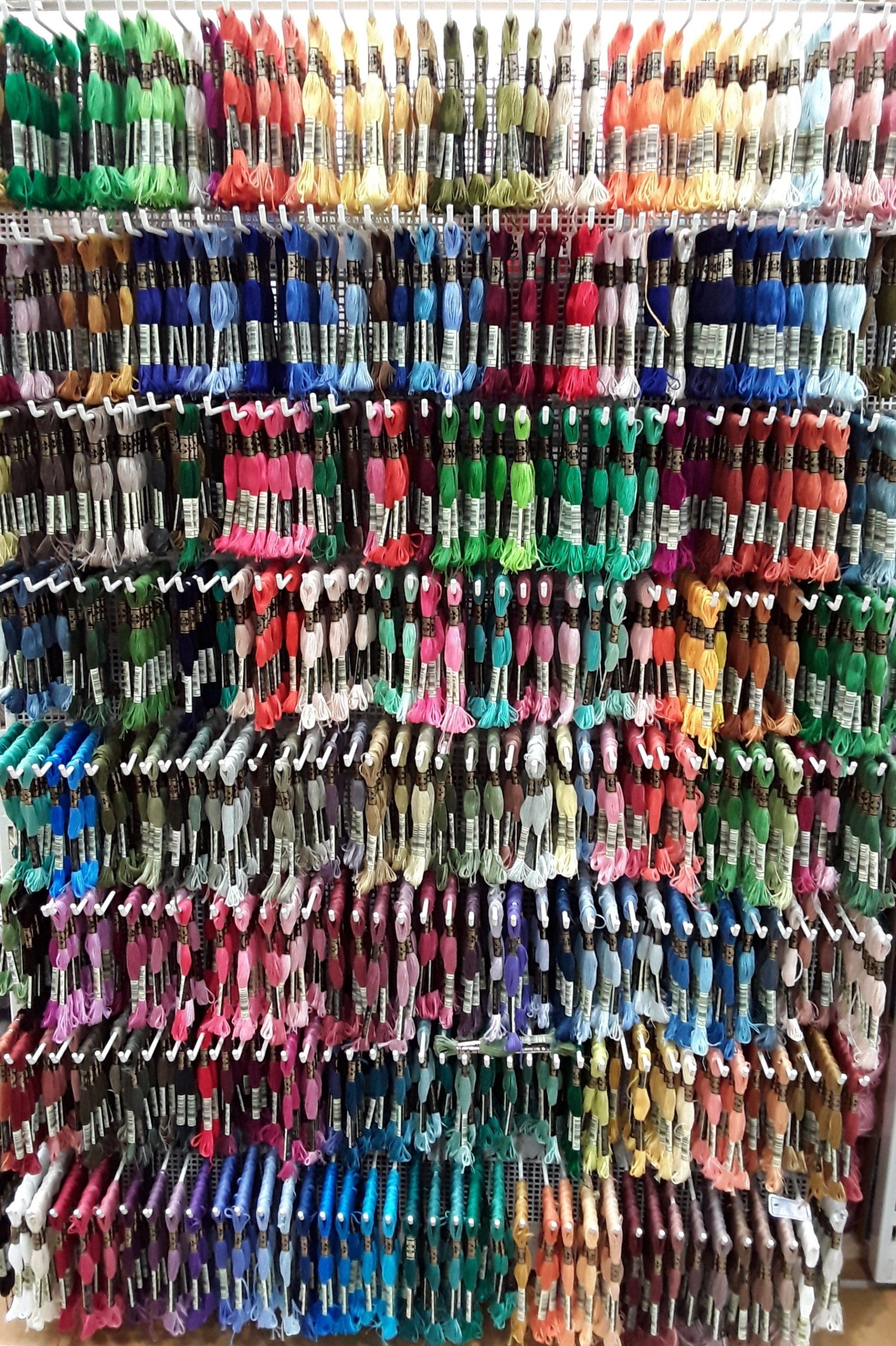 - des articles pour broder : canevas, fil, cotons, aiguilles, entoilages de broderie, etc.,